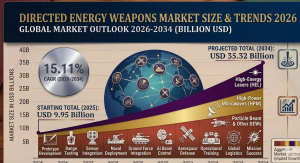ST. BROOKLYN, NY, UNITED STATES, April 22, 2026 /EINPresswire.com/ -- Directed Energy Weapons Market 2026–2034:• Market Size (2025) - USD 9.95 Billion